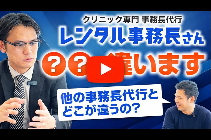 2025.05.24 メディア情報突撃となりの開業医チャンネルに出演しました 突撃となりの開業医チャンネルで特集されました。出演内容今回は、医療機関のバックオフィス業務を幅広く支援する「レンタル事務長」サービスをご紹介。人事・採用・経理からマーケティング支援まで、専門チームで徹底サポート!委託先を一本化したいクリニック経営者におすすめの内容です。こんなドクターに見てほしい開業後の運営に不安がある先生採用・人事面でお悩みのクリニック様広告やSNS運用まで手が回らない方一括でバックオフィスを任せたい方動画コンテンツはこちら