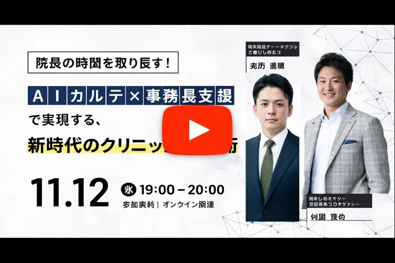 《オンラインセミナー》AIカルテ×事務長支援で実現する、新時代のクリニック経営術